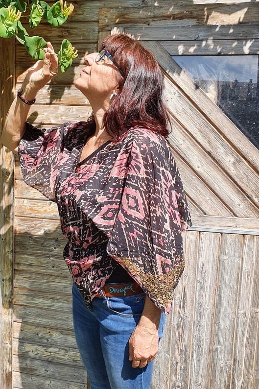 “Je les trouve très pratiques. Elles donnent une jolie forme au corps, étant plutôt amples et cintrées à la fois. Pour ma part, je les porte plutôt en tunique sur des pantalons ou des leggings avec un top. L’aspect d’avoir pu réutiliser mes foulards différemment m’a tout de suite séduite et je suis ravie du résultat. Pour l’été, sur la plage, c’est aussi sympa de les porter sur un maillot de bains et surtout, je me retrouve avec un vêtement unique et sur mesure en faisant appel à Emilie comme styliste.”