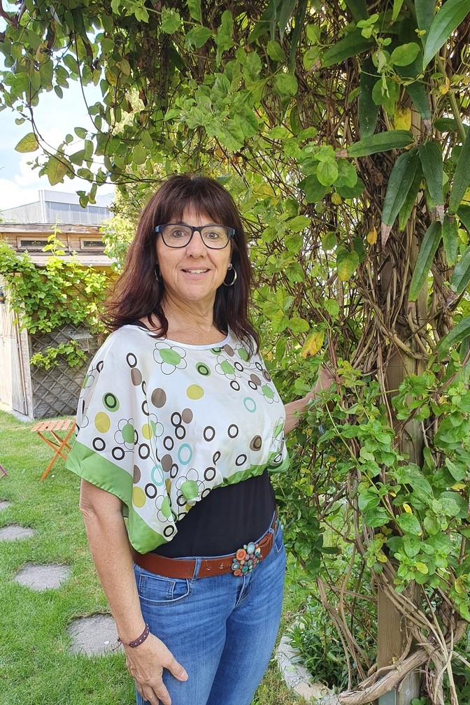“Elle est très belle et j’aime beaucoup sa matière agréable à porter. Le fait d’avoir pu réutiliser un foulard que j’aime beaucoup pour finaliser sa fabrication m’a ravie.”