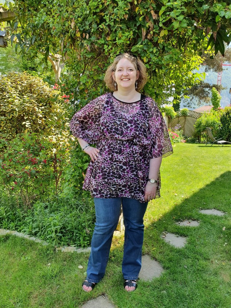 Ici avec les grandes pièces, plusieurs choix s’offrent: on peut découper dedans, créer des robes, des tuniques, des jupes, il n’y aucune limite (ou presque!) Les tuniques sont d’ailleurs une pièce phare de cette gamme, que ce soit pour réutiliser vos foulards ou par l’acquisition d’une de mes pièces réalisées, disponible en boutique en ligne. Car elles sont très pratiques, à la plage, à vite enfiler sur votre maillot de bain, ou pour compléter votre tenue. Ce que confirme Evelyne, qui m’a confié plusieurs de ses foulards: