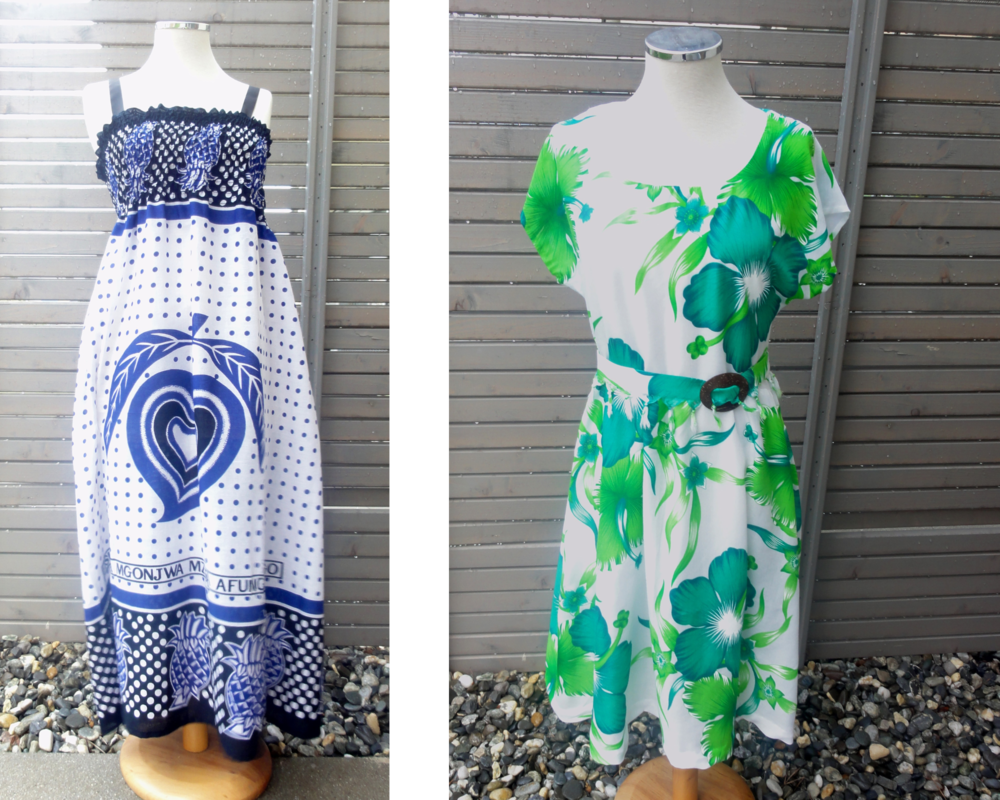 Comme pour les pulls, réalisation d’une ouverture pour la tête avec finition avec un joli biais assorti, taille élastiquée (mais non obligatoire) pour les modèles tuniques. Sinon il existe la coupe robe, avec des smocks au niveau de la poitrine, avec ou sans bretelles. Ou coudre une robe ou autre modèle en utilisant le paréo ou le foulard comme un tissu normal.
