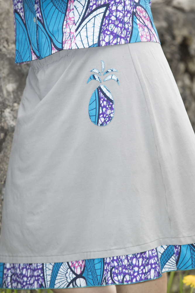 Avec cette jupe, le dépaysement et l’exotisme s’invite par petites touches dans votre quotidien, grâce à sa belle étoffe tout droit ramenées d’Afrique, via des voyages et des trésors ramenés. Elle fait partie de la collection Voyage, Voyage, qui traduit une envie de s’évader, de voyager, de découvrir.
