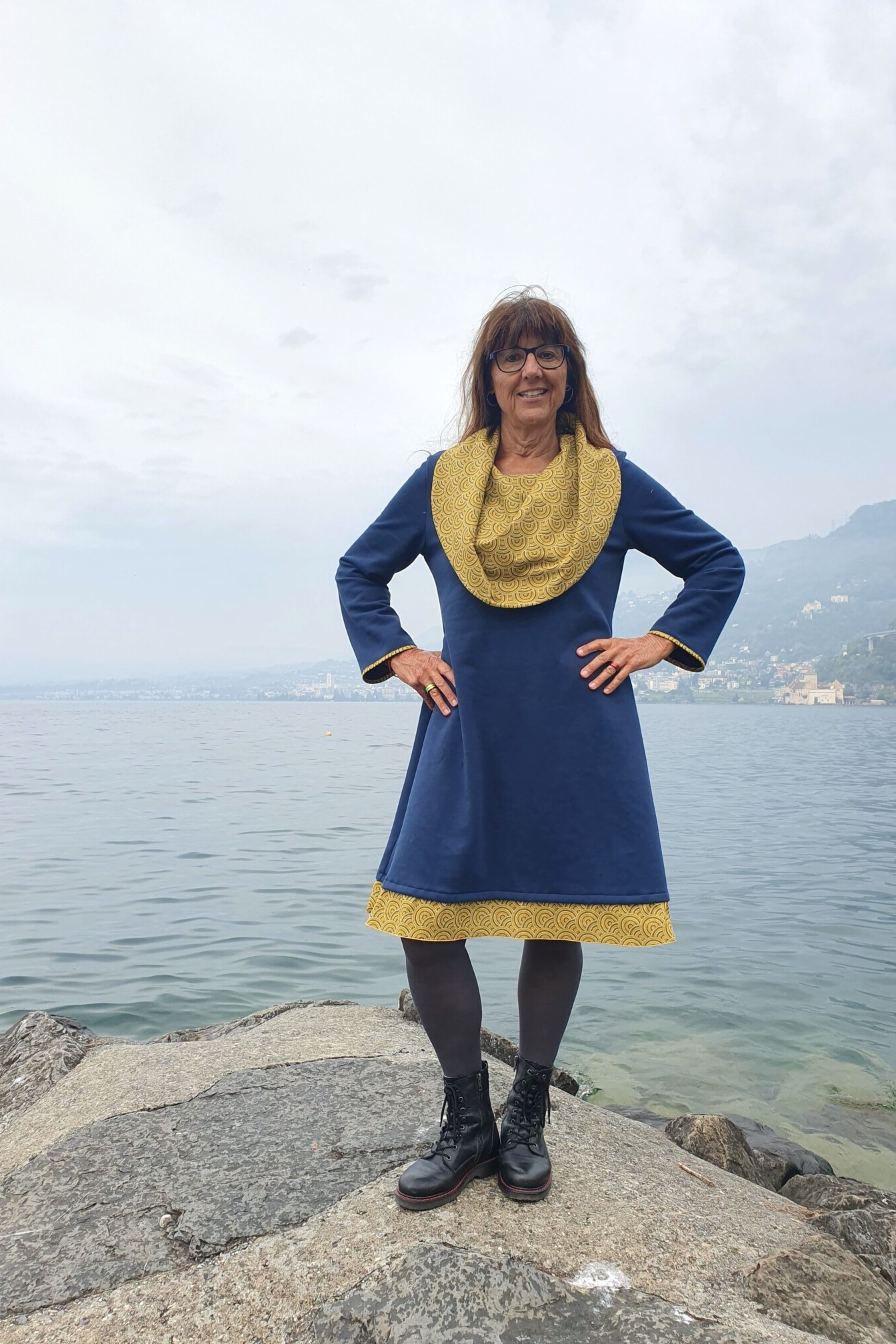 Cette robe vous apportera chaleur et douceur durant la saison froide, avec sa matière agréable à porter, épaisse et moelleuse en jersey sweat bio et son large col protégeant votre cou et apportant de l’originalité au modèle. Vous pourrez jouer avec ce col, en le plaçant sur vos épaules ou plus tombant sur la poitrine selon vos envies et humeurs du jour. Cet élément est réalisé avec du coton imprimé, avec les paons stylisés ou les cercles, qui est également présent à l’ourlet des manches et en bandeau en bas de la robe, pour une finition soignée.