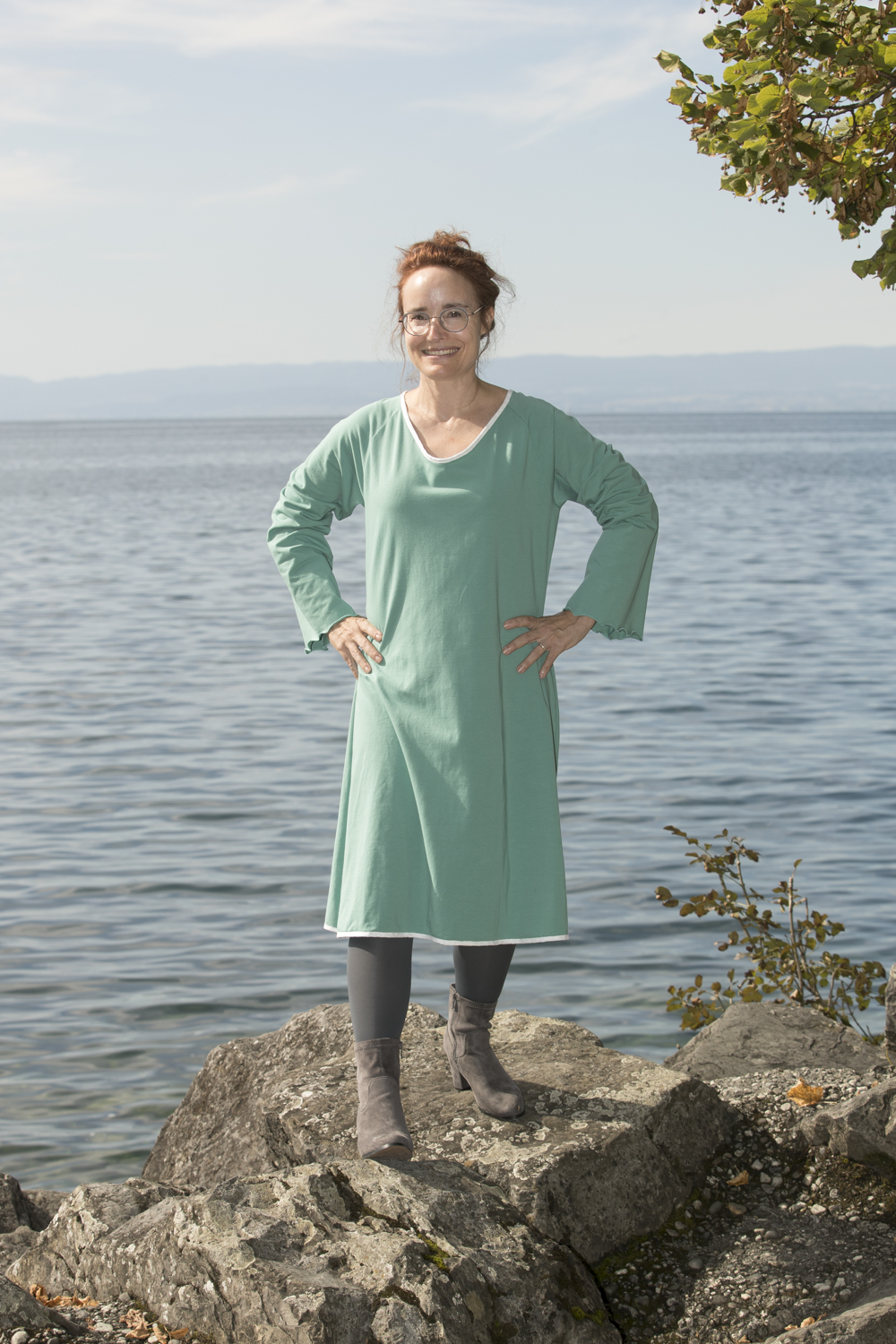 Elle sera votre compagne parfaite pour votre quotidien avec son jersey tout doux sur la peau et confortable en coton bio, sa forme simple et pratique et son humeur douce. Vous pouvez la porter pour tous les jours, au travail ou à la maison, lors de balades ou de repas décontractés.